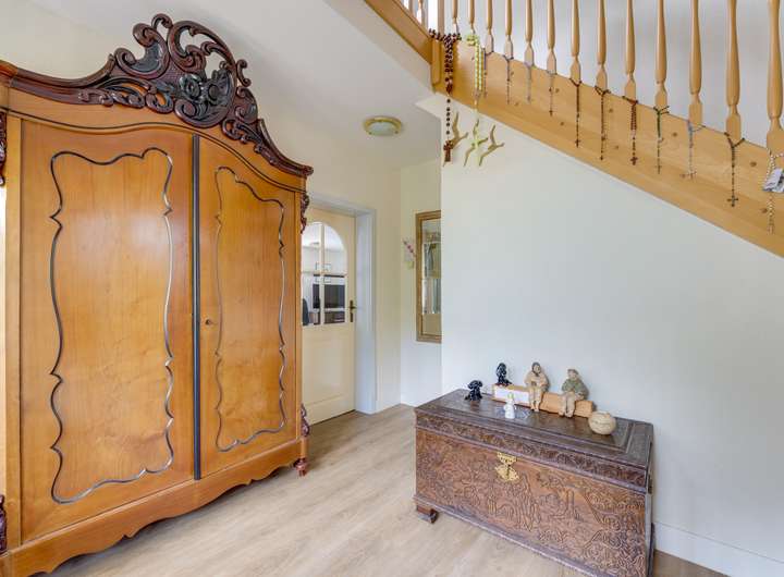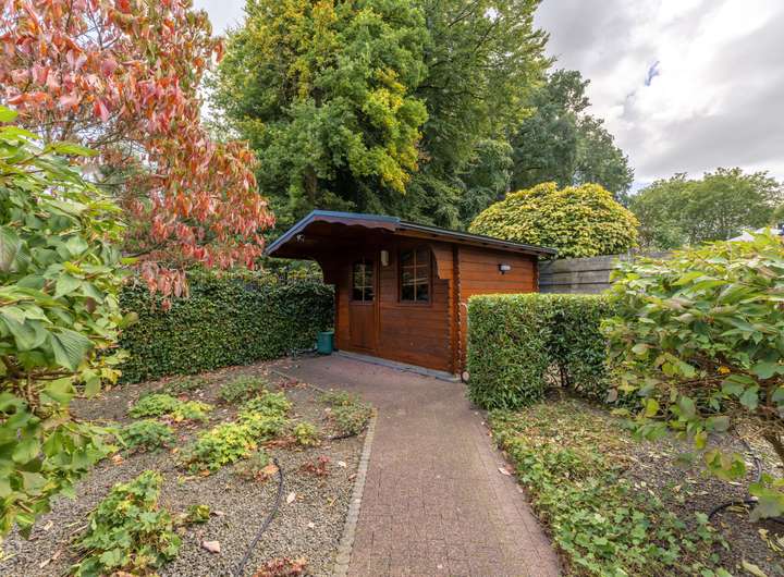 Draußen besticht das Haus durch einen wunderschön angelegten Garten, der das Haus umgibt. Er bietet viel Grün, einen Pavillon und mehrere Terrassen, die zu jeder Tageszeit zum Entspannen einladen. Der Garten bietet viel Privatsphäre und Ruhe und bietet ausreichend Platz für Spielbereiche, einen Gemüsegarten oder sogar einen Whirlpool. Ausreichend Parkplätze stehen auf dem Grundstück zur Verfügung.