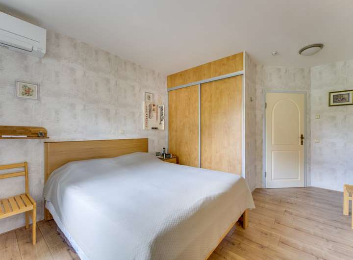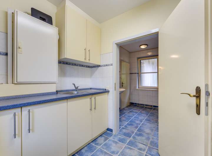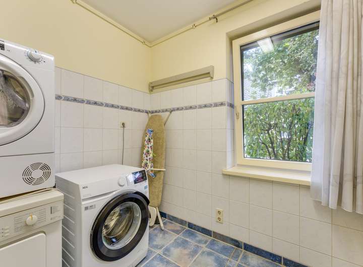 Ein besonderes Merkmal dieses Hauses ist das geräumige Schlafzimmer im Erdgeschoss. Dieses ca. 15 m² große Zimmer verfügt über einen Einbauschrank, eine Klimaanlage und ein eigenes Badezimmer mit ebenerdiger Dusche, Waschbecken und Toilette. Vom Badezimmer aus gelangt man direkt in einen praktischen Waschraum, der mit einer zusätzlichen Küchenzeile und Anschlüssen für Waschmaschinen ausgestattet ist.