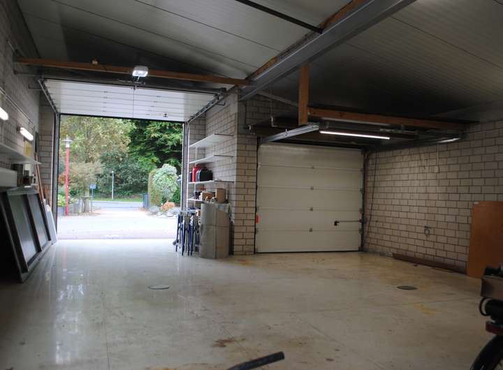 Neben das Haus befindet sich eine besonders geräumige Garage mit ca. 66 m² (knapp 12 Meter tief und 7 Meter breit). Sie ist mit einem elektrischen Garagentor, teilweiser Fußbodenheizung und einem Heizkörper ausgestattet. Dank ihrer Größe und Ausstattung eignet sich dieser Raum ideal als Werkstatt, Hobbyraum, Atelier oder Lagerraum.