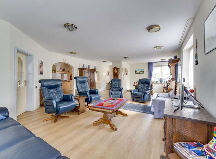 Dieser großzügige Bungalow, Baujahr 2003, liegt in einer verkehrsberuhigten Straße. Das Haus vereint eine durchdachte Raumaufteilung mit modernen Annehmlichkeiten und ist somit ideal für alle, die sich ein Leben lang ein komfortables Leben wünschen – jetzt und in Zukunft. Mit einer Wohnfläche von ca. 166 m², einer großen Garage von ca 66m2!, einem üppigen Garten und umfangreichen nachhaltigen Ausstattungsmerkmalen bietet dieses Haus alles für alle, die Wert auf Platz, Ruhe und energieeffizientes Wohnen legen.