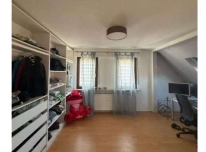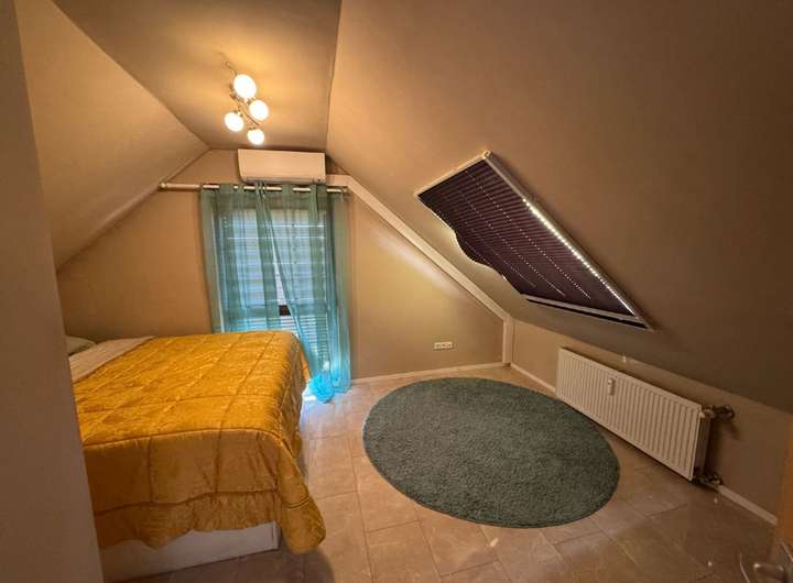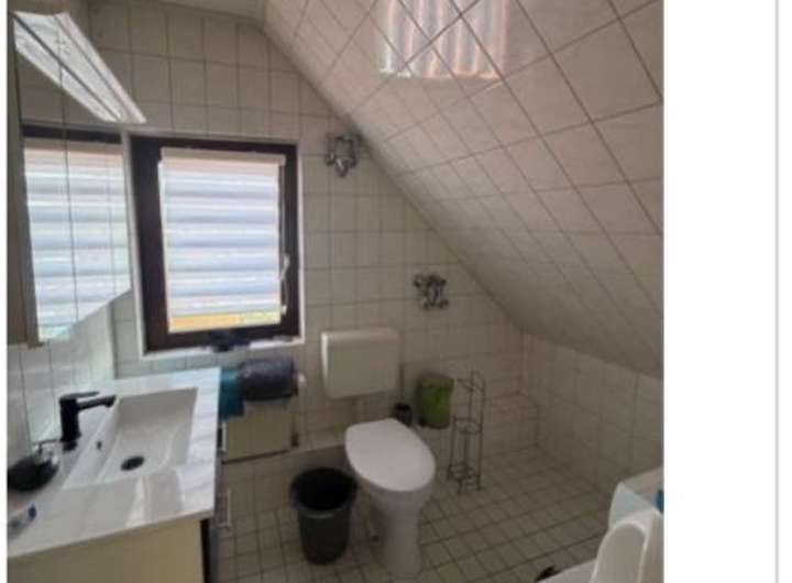Die zweite Wohnung (ebenfalls Maisonette, ca.100m²) verteilt sich auf vier Zimmer, zwei Bäder, einer Küche und zwei kleinen Räume, die sich gut als Ankleide oder Stauraum nutzen lassen. Einige Dachschrägen verstärken das angenehme und gemütliche Wohngefühl, lassen aber noch genug Platz für Schränke und Regale.