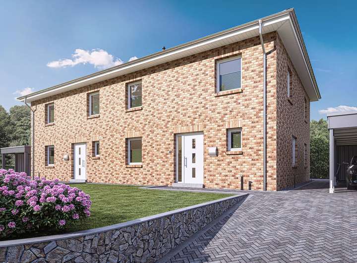 Mit VIRTUS Massivhaus bauen wir hier Stein auf Stein deine Doppel-Villa Kaffee-Mühle mit Klinker mit ca. 125m² (100m² + Ausbau Dachgeschoss) mit 5 Zimmern & deinem individuellen Wunsch-Grundriss !