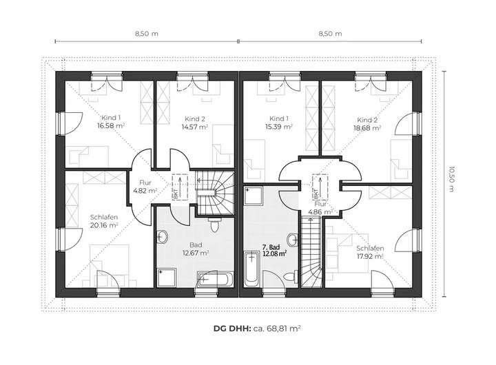 • ca. 125m² (100m² + Ausbau Dachgeschoss)