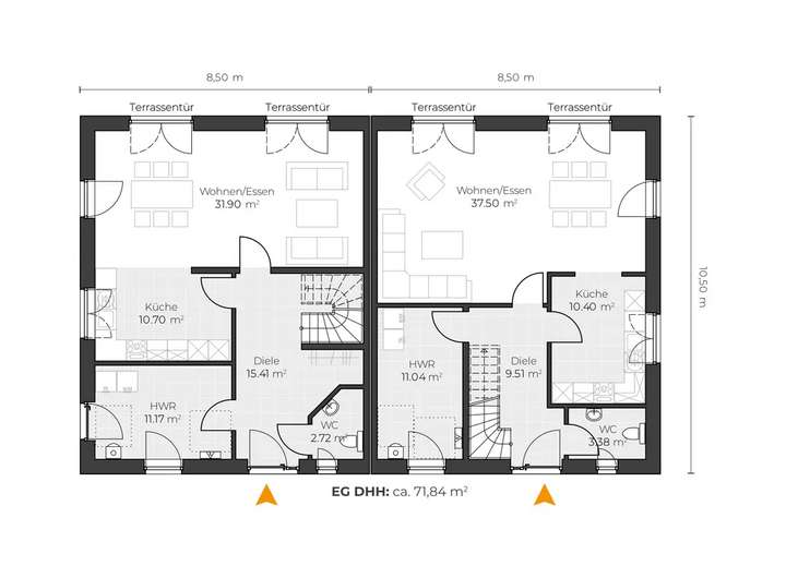 Baupartner Doppel-Villa Kaffeemühle KLINKER+KFW40 5 Zimmer über 3 Etagen