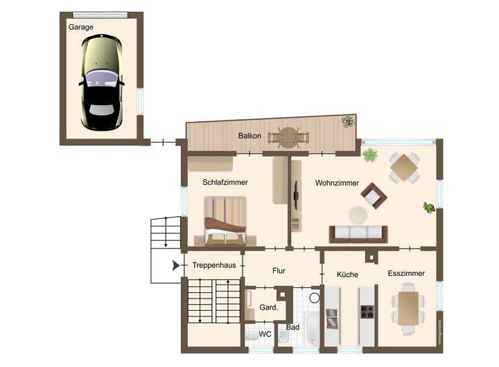 - jeweils ein Gartgenbereich an der Süd-Seite und an der West-Nordseite