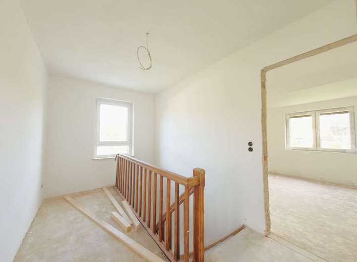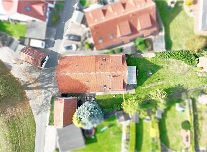 Bei der angebotenen Immobilie handelt es sich um einen Resthof aus ca. 1700 mit zwei Nebengebäuden, der ca. 2024/2025 in Teilen kernsaniert und renoviert wurde. Die Sanierungs- und Renovierungsarbeiten sind noch nicht vollständig abgeschlossen. Der Hauseingang ist über eine Gartentür rechts neben dem Gebäude zugänglich. Ein weiterer Eingang befindet sich direkt vor dem Haus und führt ausschließlich zur angrenzenden Scheune, die direkt an das Wohnhaus angrenzt und vom Erdgeschoss aus betreten werden kann. Im Erdgeschoss gelangt man vom Hauseingang in einen hellen Flur. Auf der linken Seite befindet sich ein Badezimmer mit Dusche. Vom Flur aus erreicht man den offenen Wohn- und Essbereich. Ebenfalls vom Flur abgehend ist die Küche, in der der Einbau einer modernen Küche noch vorgesehen ist. Der Flur verläuft weiter auf der rechten Seite zu einem weiteren Zimmer, dass als Schlafzimmer genutzt werden kann. Von dort besteht Zugang zu einem kleinen Kellerraum, der als praktischer Abstellraum dient. Angrenzend an den Flur liegt der Wintergarten, der sich noch im ursprünglichen Bauzustand befindet und bei weiterer Nutzung saniert werden muss. Vom Flur aus führt eine Treppe ins Dachgeschoss, das drei weitere Zimmer bietet, welche flexibel als Schlaf-, Wohn- oder Arbeitszimmer genutzt werden können. Ein weiteres, noch nicht möbliertes Badezimmer ergänzt das Raumangebot im Obergeschoss. Zudem besteht hier der Zugang zum Dachstuhl. Die Scheune verfügt im Erdgeschoss über ein weiteres Badezimmer mit Dusche. Der restliche Bereich der Scheune und der Nebengebäude befinden sich im typischen Baujahreszustand und müssen bei geplanter Nutzung saniert werden. Objektmerkmale • 5 Zimmer • 3 Vollbäder • Wintergarten • Großzügiger Garten • Zwei Nebengebäude • Ausbaureserve