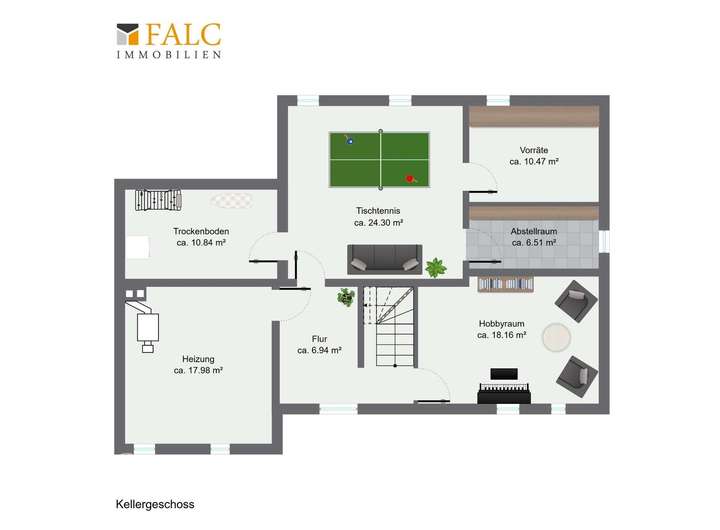 + Keller mit ähnlichem Zuschnitt wie im Erdgeschoss