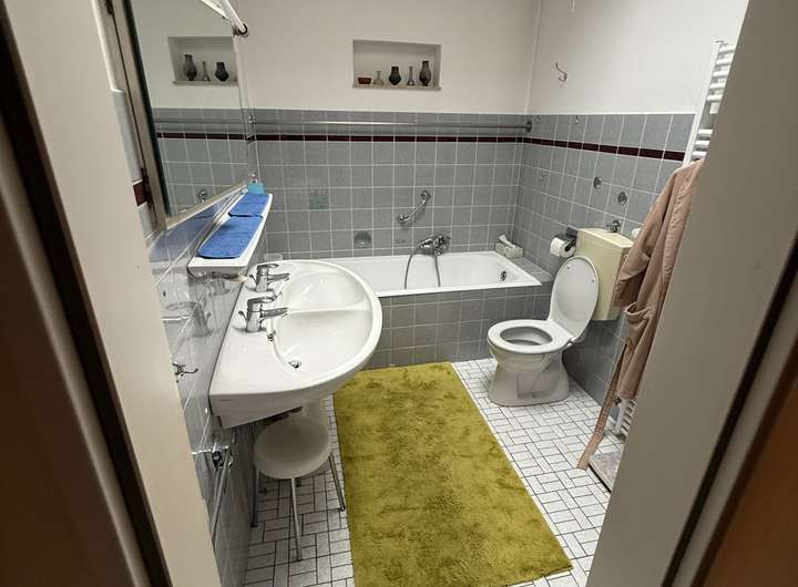 Weitere Annehmlichkeiten: Apotheken, Ärzte und kleine Geschäfte sorgen für Komfort, während Parks und der Rhein nur wenige Minuten entfernt einladen zu Erholung.