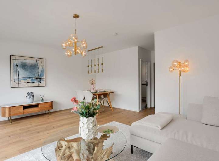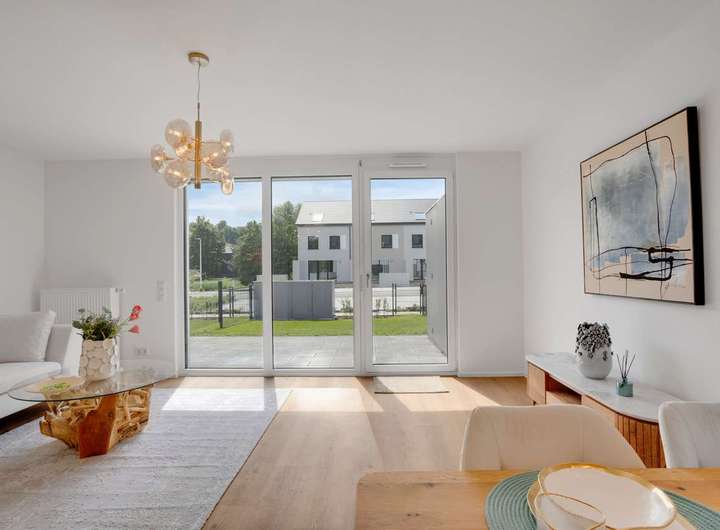 Jede Wohneinheit überzeugt durch hochwertige, stilvolle Ausstattung und clevere Details für deinen Alltag. Design-Vinylböden, elektrische Rollläden und moderne Sanitärelemente in den Bädern sorgen für echtes Wohlfühlambiente. Großzügige Wohnflächen, praktische Gartenboxen und vorgelagerte Schränke bieten dir extra viel Komfort und Stauraum.