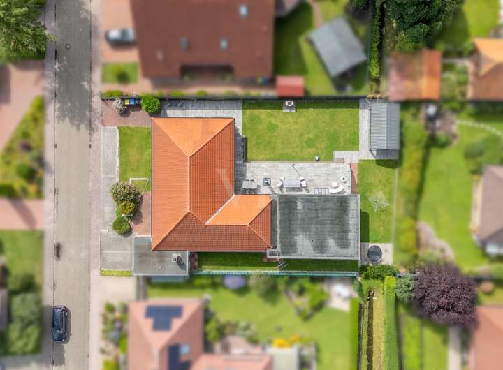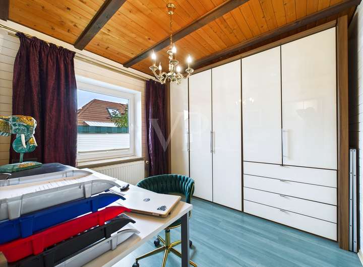 Beide Einheiten liegen im Haupthaus, einem Bungalow aus 1978, dessen Flachdach ca. 2003 durch ein Walmdach ersetzt wurde. Der Dachboden dient aktuell als Stauraum.