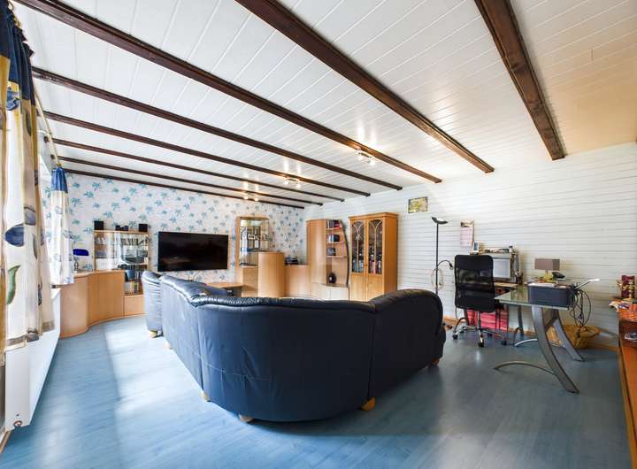 Beide Einheiten liegen im Haupthaus, einem Bungalow aus 1978, dessen Flachdach ca. 2003 durch ein Walmdach ersetzt wurde. Der Dachboden dient aktuell als Stauraum.