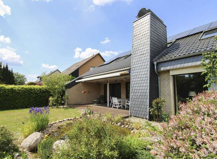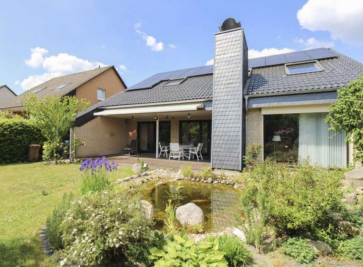 + Der uneinsehbare Süd-Garten inkl. Teich auf ca. 628 m² Grund lädt zum Verweilen ein - eine Terrasse und ein Balkon bereichern das Erlebnis