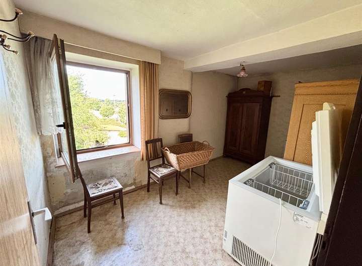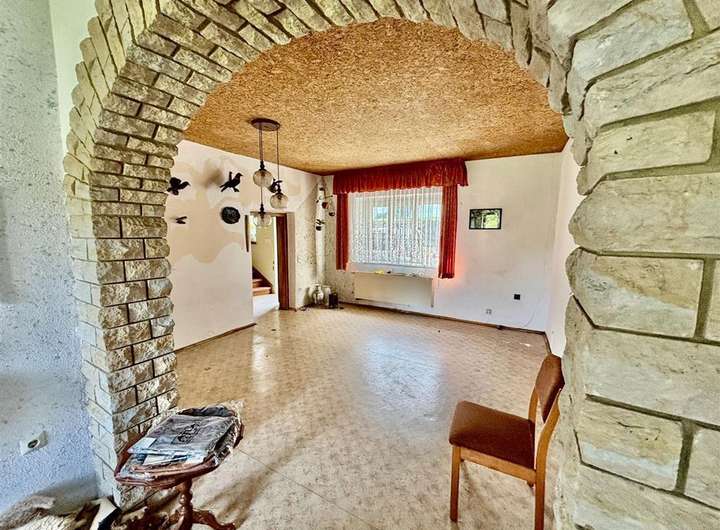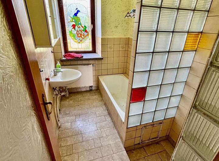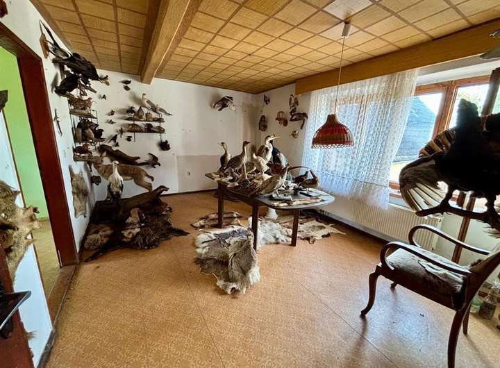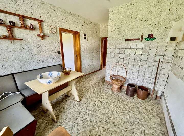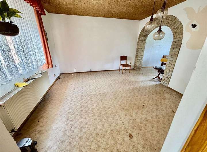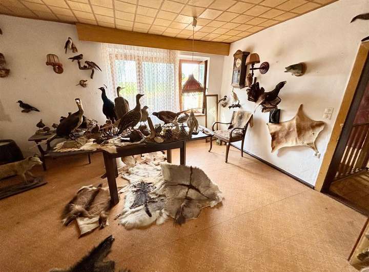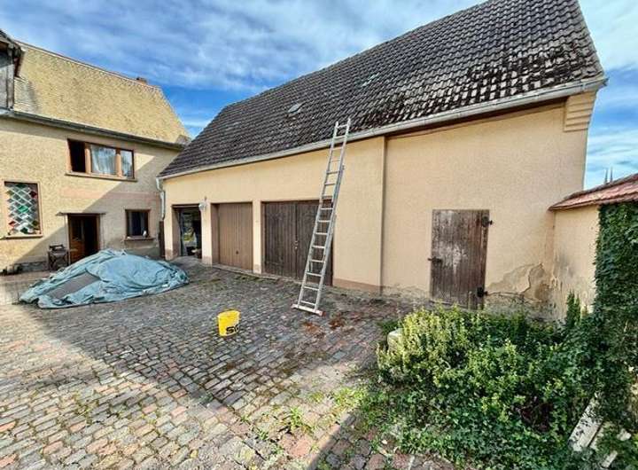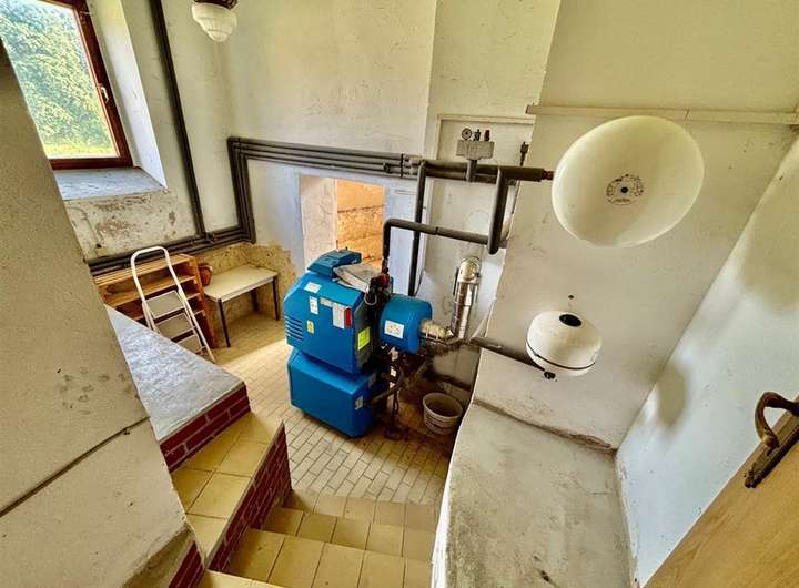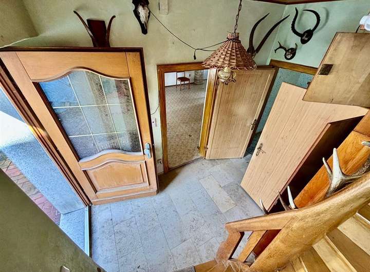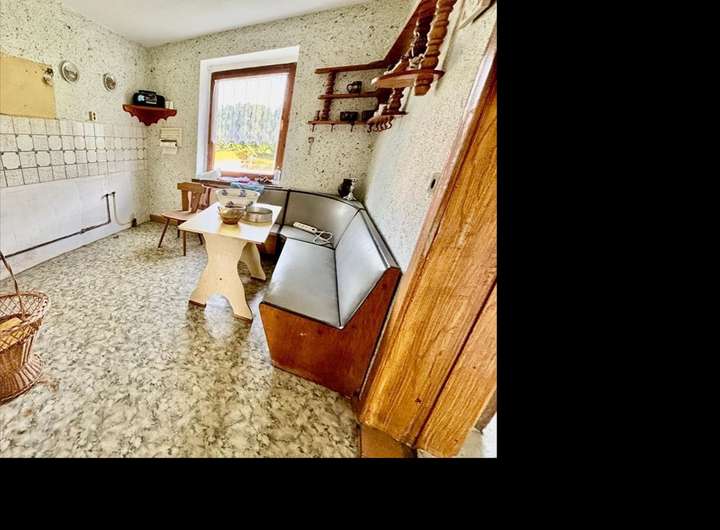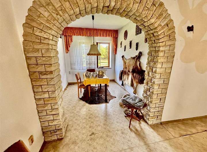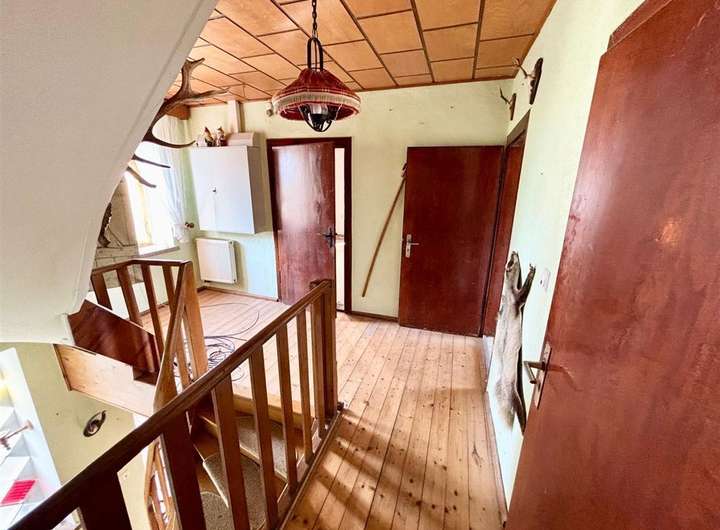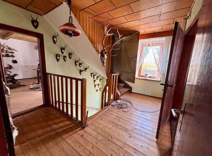 Ausstattung & Besonderheiten Baujahr: ca. 1890 Wohnfläche: ca. 130 m² Grundstücksfläche: ca. 4.000 m² Zimmer: 6 + Küche, Bad und Gäste-WC Heizung: Ölheizung, Kessel von 1994 Bad mit Tageslichtfenster Gäste-WC im Erdgeschoss Garagen vorhanden Viehhaltung möglich dank Stallungen und Scheune Diverse Nebenräume im Haupthaus Anschluss an das öffentliche Abwassernetz Einfache Ausstattung mit großem Potenzial Grundrissaufteilung Erdgeschoss: Wohnzimmer mit Essbereich Küche mit Speisekammer Tageslichtbad Gäste-WC Ein zusätzliches Zimmer Obergeschoss: 5 Zimmer zur individuellen Nutzung (z. B. Schlaf-, Kinder- oder Arbeitszimmer) Das Haus bietet Potenzial zur individuellen Gestaltung und Modernisierung. Ideal für handwerklich Begabte mit viel Platz im Außenbereich.
