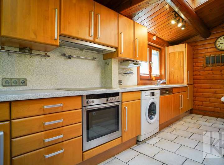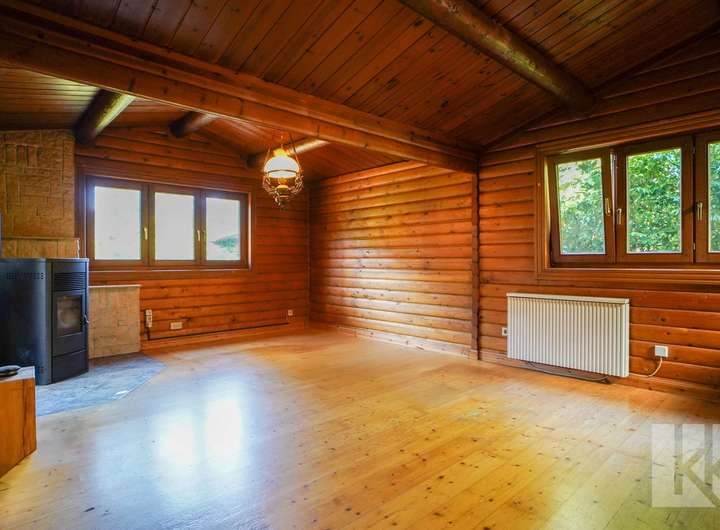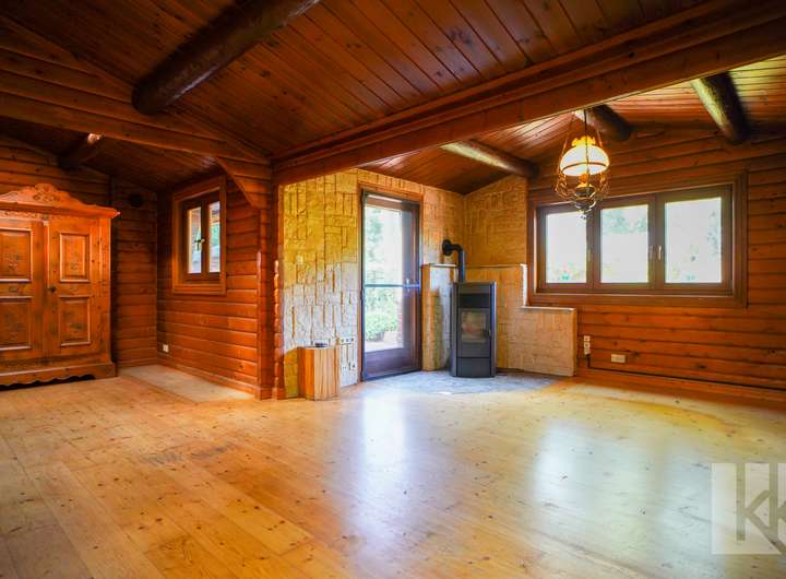 Das Herzstück des charmanten norwegischen Blockhauses ist der großzügige Wohnbereich mit rund 32 m². Große Fensterflächen sorgen für viel Licht und ein angenehmes Raumgefühl, während der gemütliche Pelletofen für wohlige Wärme und eine stimmungsvolle Atmosphäre sorgt – perfekt, um den Alltag hinter sich zu lassen.