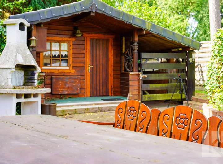 Ein weiteres Highlight: Das geräumige Gartenhaus bietet zusätzlichen Stauraum für alles, was im Alltag nicht ständig gebraucht wird.