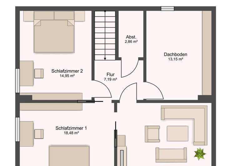 Die Heizungsanlage wurde zwar erst 2017 erneuert, jedoch befindet sich das Haus insgesamt in einem eher sanierungsbedürftigen Zustand. Gerade darin liegt aber für kreative Köpfe und junge Familien eine wunderbare Chance. Wer den Mut hat, eigene Ideen einfließen zu lassen, kann hier ein Zuhause mit unverwechselbarem Charakter und Geschichte schaffen. Die mit KI erstellten „Renovierungsbilder“ laden Sie ein, Ihren Möglichkeiten freien Lauf zu lassen, sie sind als Inspiration gedacht und möchten Ihnen aufzeigen, welches Potenzial in diesem Haus steckt. Zusätzlichen Rückenwind gibt das KfW-Förderprogramm 308 „Jung kauft Alt“, das junge Familien bei der Sanierung unterstützt und damit den Traum vom Eigenheim noch greifbarer macht.