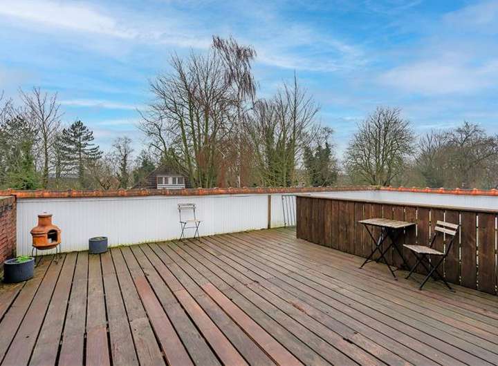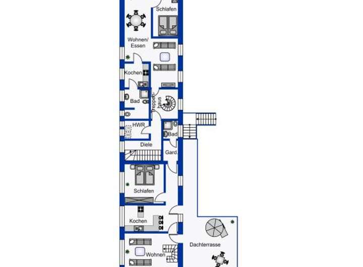 Beide Einheiten haben jeweils eine eigene großzügige Dachterrasse, eine Wohnung ist, wie bereits erwähnt, aktuell nur über die Arztpraxis erschlossen..