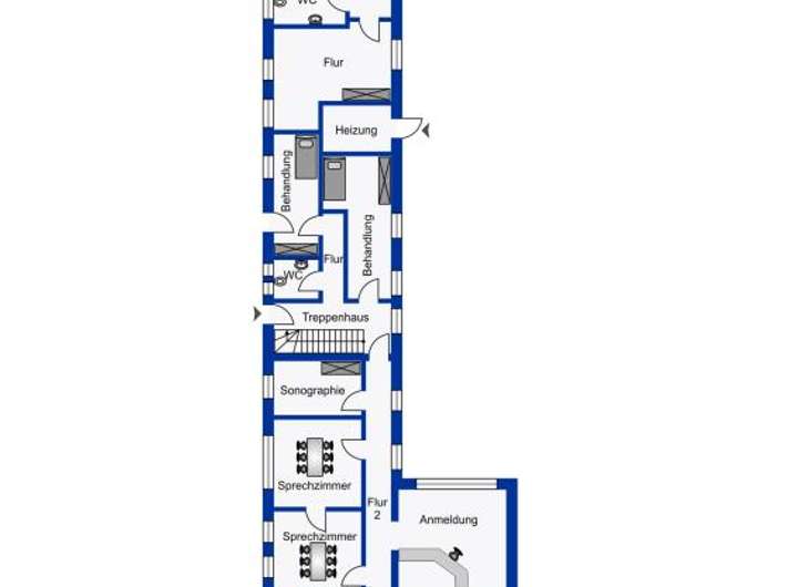 In der vordersten, ehemals unterkellerten Einheit ist seit Jahrzehnten eine bekannte und gemeinschaftliche Arzt-Praxis ansässig (ca. 310 m² Nutzfläche), im hintersten Anbau (Baujahr 1999, ca. 100 m² Nutzfläche) -und bereits ebenfalls langjährig- eine renommierte Physiotherapeuten-Praxis.