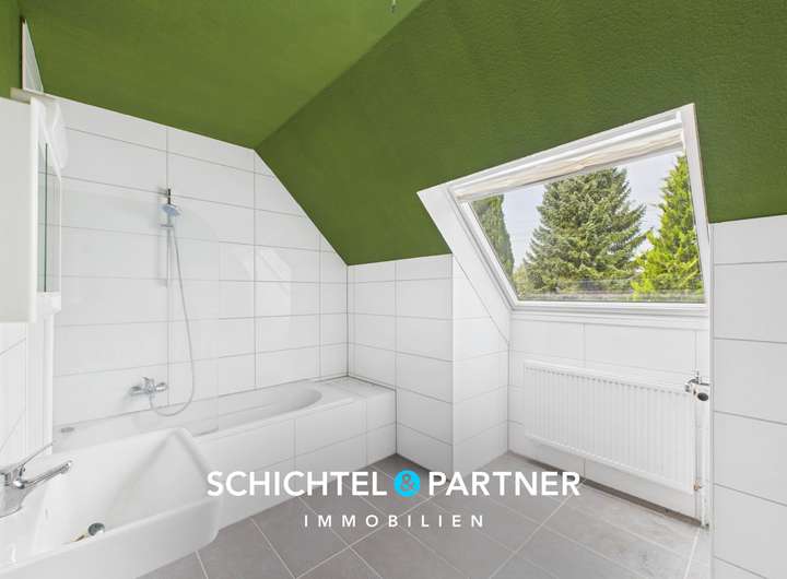 - Weiß gefliestes Tageslicht-Vollbad in der Einliegerwohnung
