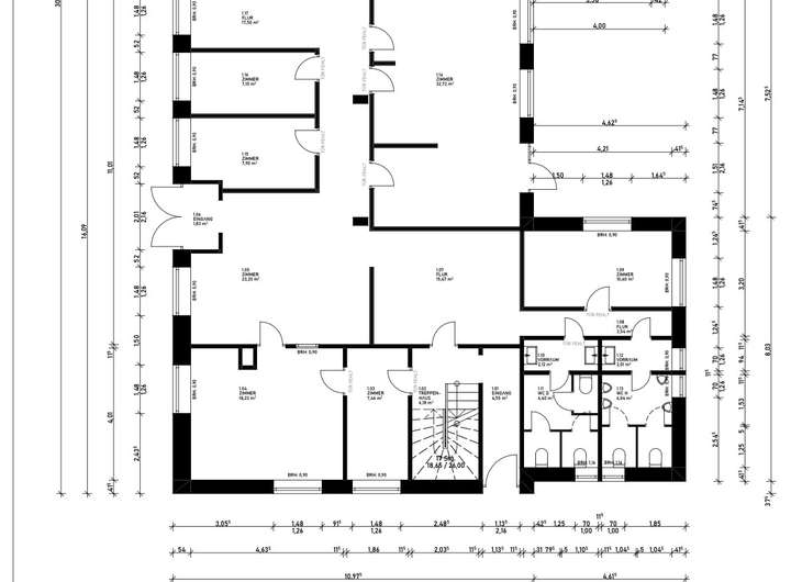 - Gewerbefläche im Erdgeschoss mit neun Zimmern von ca. 164 m²