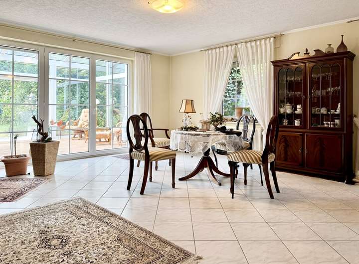 - Wohn- und Esszimmer mit Zugang zum Wintergarten und in den Garten