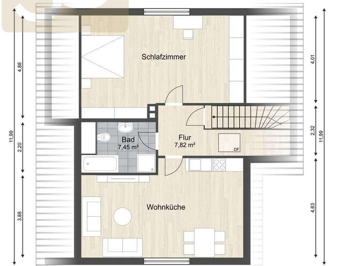 + Möglichkeit zum Einfamilienhaus zurück zu bauen