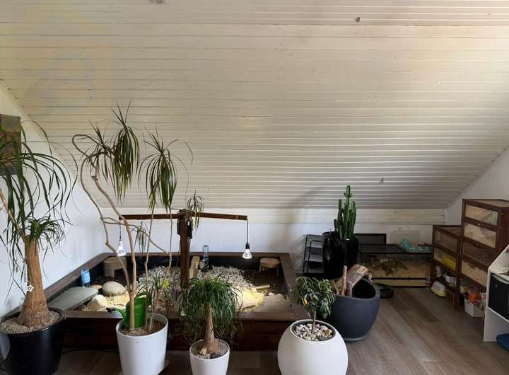 Das Haus ist derzeit in drei separate Wohneinheiten unterteilt. Im Erdgeschoss (EG) befinden sich zwei eigenständige Wohnungen. Jede dieser Einheiten bietet jeweils ein Schlafzimmer, ein modernes Badezimmer, sowie einen offenen Wohn- und Essbereich mit integrierter Einbauküche. Beide Erdgeschosswohnungen verfügen über direkten Zugang zu einer der zwei Terrassen und dem großen Garten. Die dritte Wohneinheit befindet sich im Dachgeschoss und verfügt ebenfalls über einen offenen Wohn- und Essbereich mit Einbauküche und ein geräumiges Badezimmer, das sowohl mit einer Dusche als auch einer Badewanne ausgestattet ist.