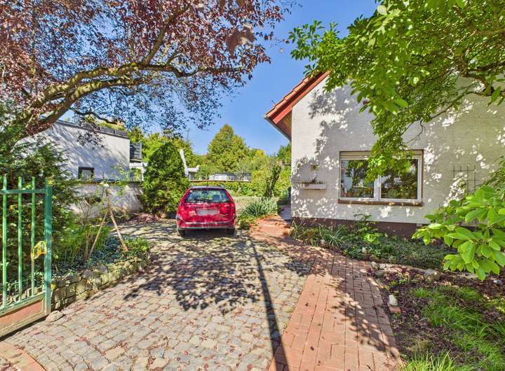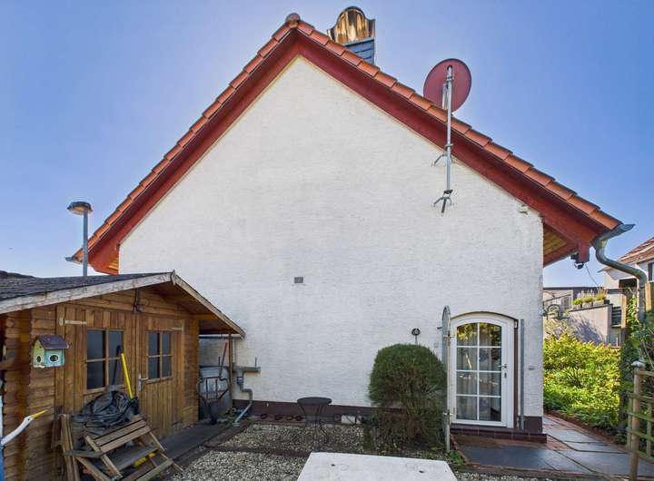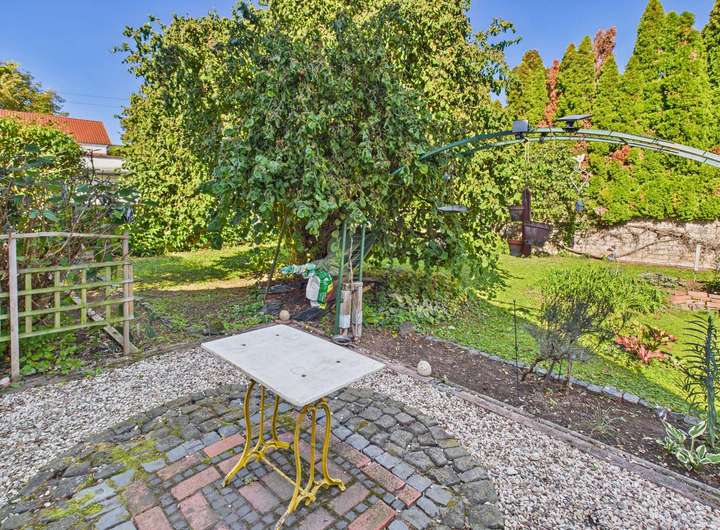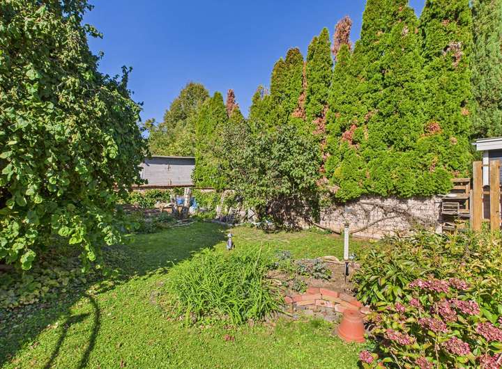 Der weitläufige Garten bietet viel Platz zum Entspannen, Gärtnern oder für gesellige Stunden unter freiem Himmel. Eine charmante Gartenlaube ergänzt das Outdoor-Angebot und dient als praktischer Stauraum für Ihre Gartengeräte.