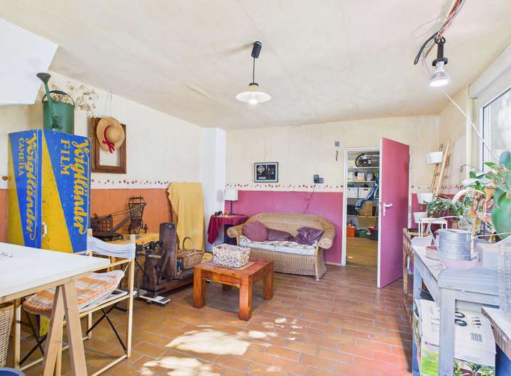Praktisch und komfortabel zugleich: Eine integrierte Garage sorgt für bequemes Parken und zusätzlichen Stauraum. Ein weiterer, separat zugänglicher Raum bietet zahlreiche Nutzungsmöglichkeiten – ob als Werkstatt, Atelier oder Hobbyraum.