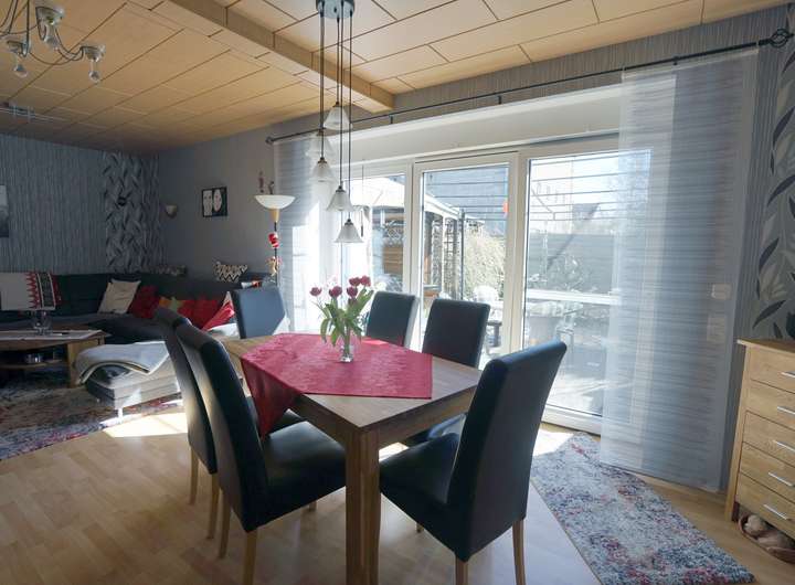 - großes Wohnzimmer mit Essbereich und Zugang zur Terrasse