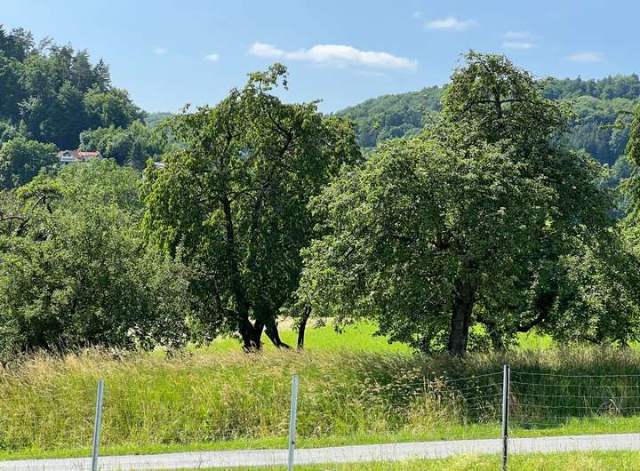 Für die Bebauung mit einem Einfamilienwohnhaus samt Garage liegt bereits ein genehmigter Bau-Vorentscheid vor. Auflage aus diesem Vorentscheid ist, den vorhandenen, ortsbildprägenden, alten Walnussbaum an der Nordostecke des Grundstücks zu erhalten.