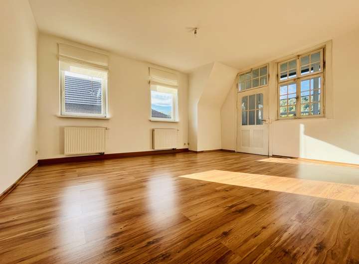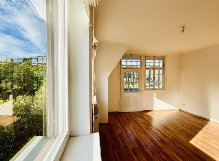 Noch unausgebaut, aber voller Potenzial: Das Dachgeschoss wartet darauf, neu zum Leben erweckt zu werden. Die Aussicht von hier? Atemberaubend. Direkt in den Wald, bis zum Horizont und zum repräsentativem Bahnhofsgebäude im Schwarzwaldstil. Wer Platz für kreative Ideen sucht – hier ist er.