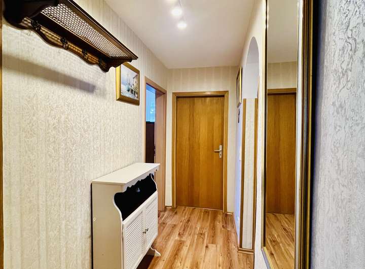 Im Erdgeschoss empfängt Sie eine behagliche 3-Zimmer-Wohnung mit ca. 71 m² Wohnfläche. Der Blick durch die Fenster fällt ins Grüne, das Wohnzimmer öffnet sich zur überdachten Loggia – perfekt, um die Morgenruhe bei einer Tasse Kaffee zu genießen. Küche und Esszimmer laden zum gemeinsamen Kochen und Verweilen ein, während das gemütliche Schlafzimmer Ruhe verspricht. Das Tageslichtbad rundet das harmonische Raumgefühl ab.