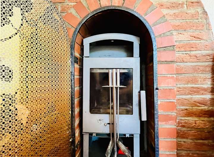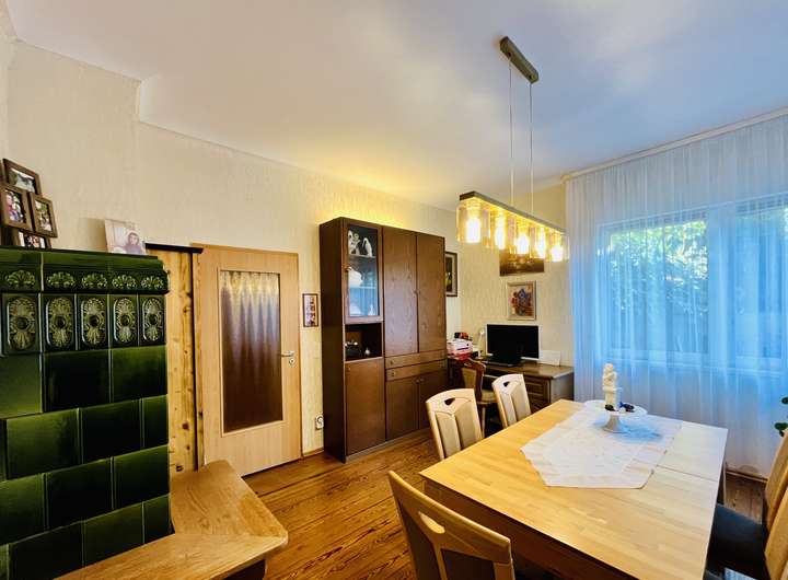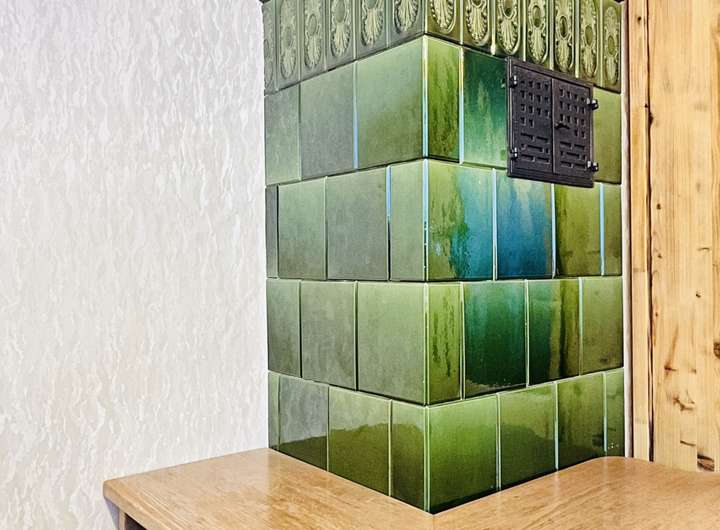• Holzofen im Erdgeschoss im alten Kachelofen integriert