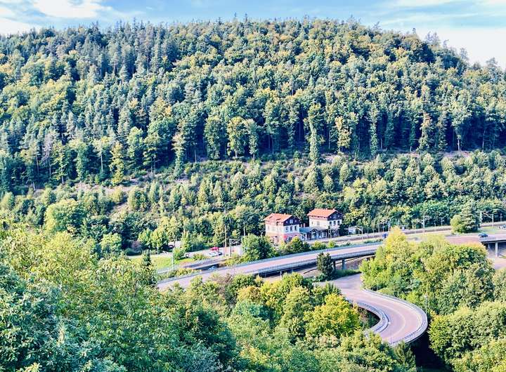 • Wunderschöne Fernsicht in Richtung Wald und zum historischen Bahnhofsgebäude