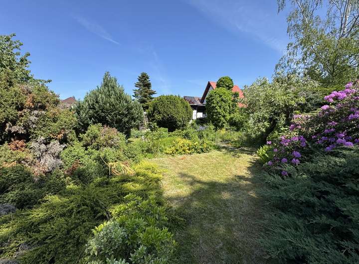In attraktiver 2. Reihe gelegen, erwartet Sie ein großzügiges und schön eingewachsenes Grundstück mit ca. 874 m² Fläche. Die Zufahrt ist angenehm breit (ca. 4 m) und sorgt für eine bequeme Erreichbarkeit.