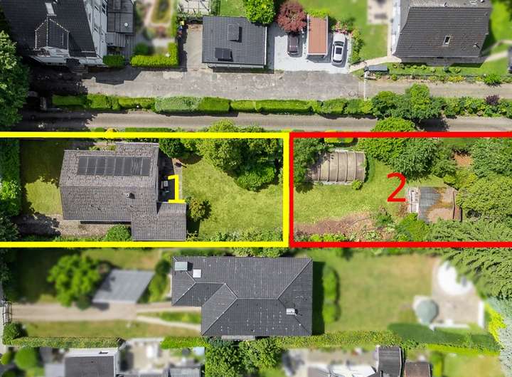 Derzeit wird das Grundstück bereits real in zwei getrennte neue Flurstücke aufgeteilt. Es entsteht ein vorderes und ein rückwärtiges Grundstück, die getrennt oder zusammen erworben werden können.