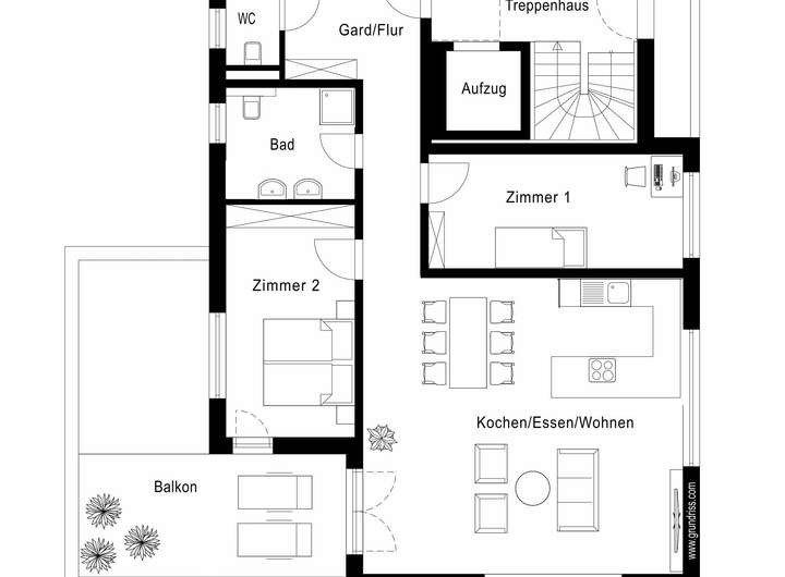 - Zimmer: 3, darunter 2 Schlafzimmer