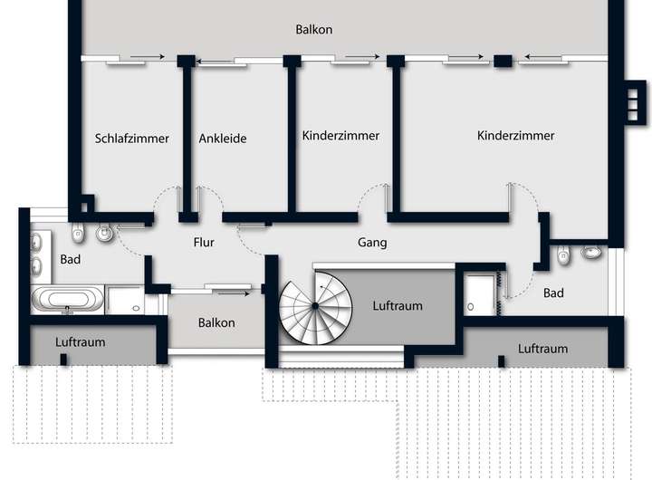 Mit ca. 230 m² Wohnfläche und 7 Zimmern bietet es viel Raum für gehobene Wohnansprüche. Highlight ist das lichtdurchflutete Wohnzimmer mit offenem Kamin, ergänzt durch eine Bibliothek, ein eindrucksvolles Foyer und Terrassenzugänge aus nahezu jedem Raum. Die Schlafbereiche im Obergeschoss sind in einen Eltern- und Kindertrakt unterteilt, jeweils mit eigenem Bad und Balkon.