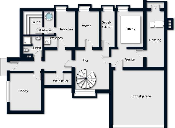 Der Keller verfügt über eine Doppelgarage, Wellnessbereich mit Sauna, Weinkeller sowie eine separate Einliegerwohnung mit eigenem Zugang – ideal für Gäste, Au-pair oder als Büro.