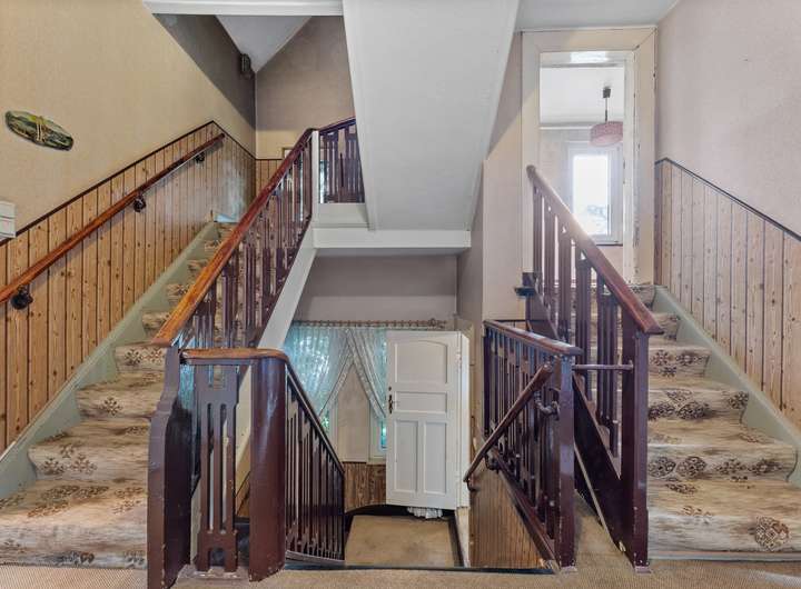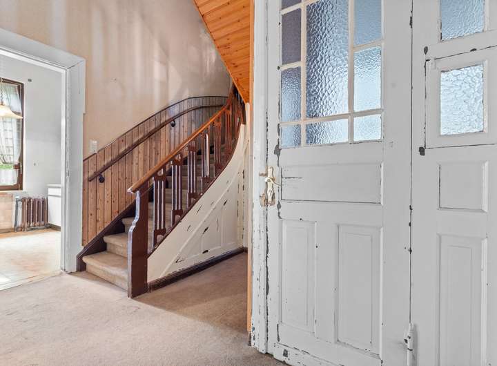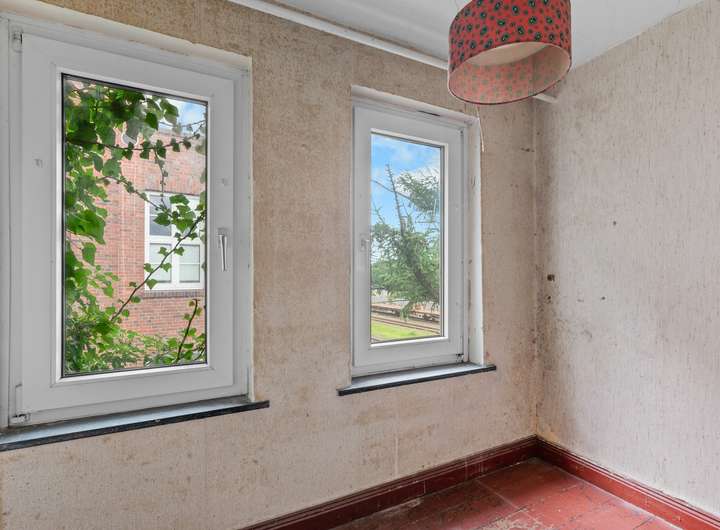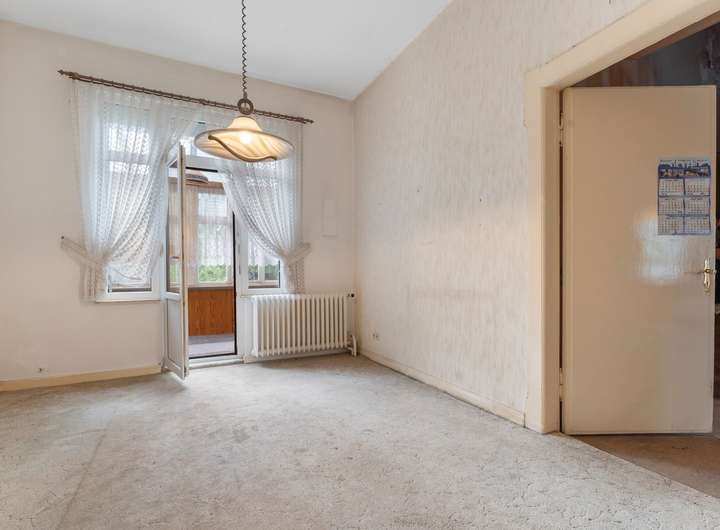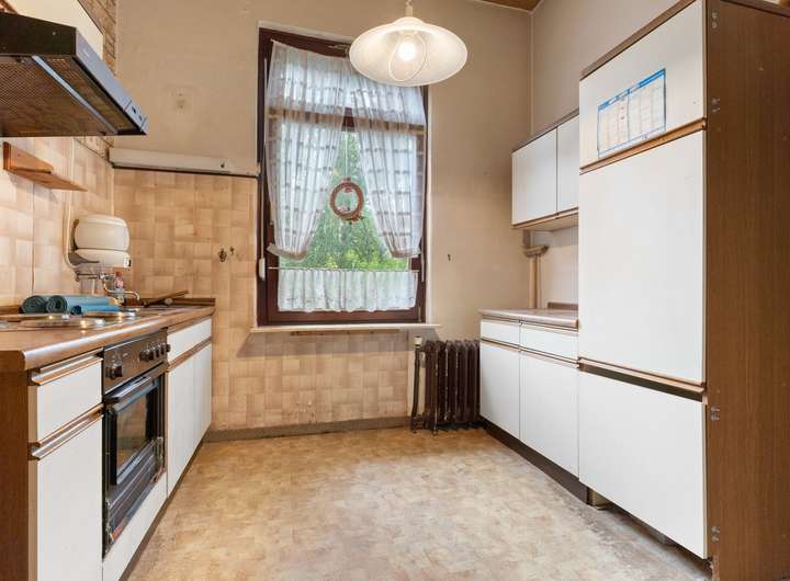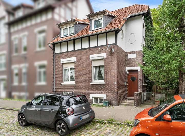 Dieses im Jahr 1912 erbaute Reihenendhaus überzeugt durch seinen außergewöhnlichen Grundriss und bietet viel Raum für kreative Gestaltungsmöglichkeiten. Auf insgesamt vier Ebenen – vom Keller bis zum Dachboden – eröffnet sich ein vielseitiges Wohnkonzept, das sich ideal für Familien oder Paare eignet, die sich ihren eigenen Wohntraum verwirklichen möchten. Das Erdgeschoss empfängt mit einem großzügigen Wohnzimmer, einem zusätzlichen Zimmer sowie direktem Zugang zum Garten und zum Wintergarten. Die angrenzende Küche verfügt über einen praktischen Abstellraum. Auf der Zwischenetage befindet sich ein Gäste-WC. Das Obergeschoss überrascht mit einer besonderen Aufteilung: Über zwei Treppen gelangt man zum einen in einen praktischen Waschraum und zum anderen zum Dachboden. Zusätzlich verfügt die Etage über drei geräumige Schlafzimmer, einem Badezimmer mit Balkon sowie einem kleinen Waschraum, der optimal als Hauswirtschaftsbereich genutzt werden kann. Der Dachboden ist aktuell nicht ausgebaut, bietet aber die Möglichkeit, weiteren Wohn- oder Arbeitsraum zu schaffen. Der Keller ist voll ausgebaut und verfügt über mehrere Räume, die sich als Abstellflächen, Hobby- oder Partykeller anbieten. Das Haus ist modernisierungsbedürftig, überzeugt jedoch durch seine solide Substanz und seinen einzigartigen Schnitt. Ein besonderes Highlight ist die moderne Gasheizung aus dem Jahr 2024, die bereits erneuert wurde.