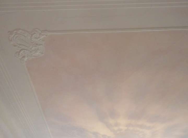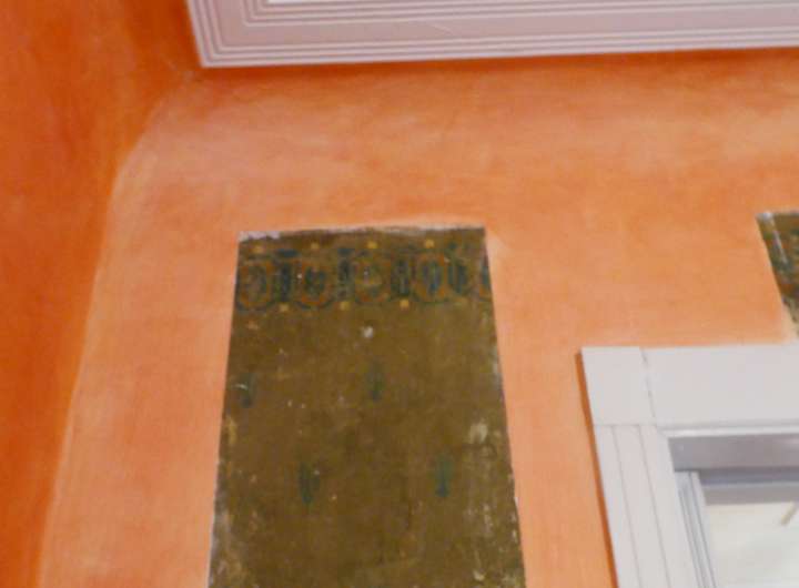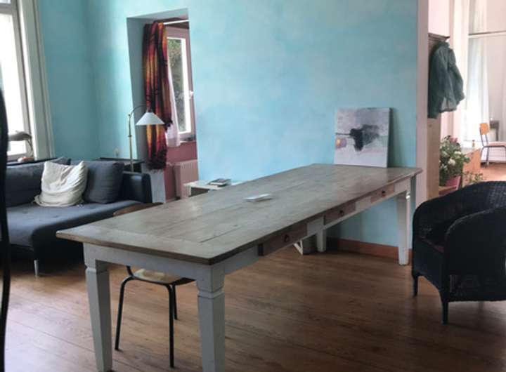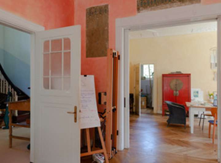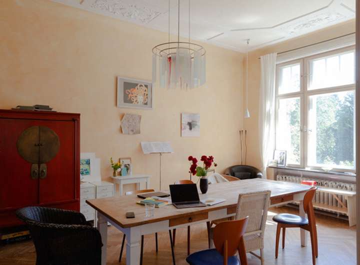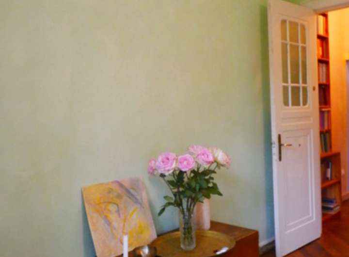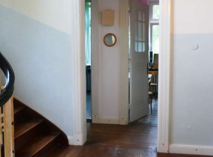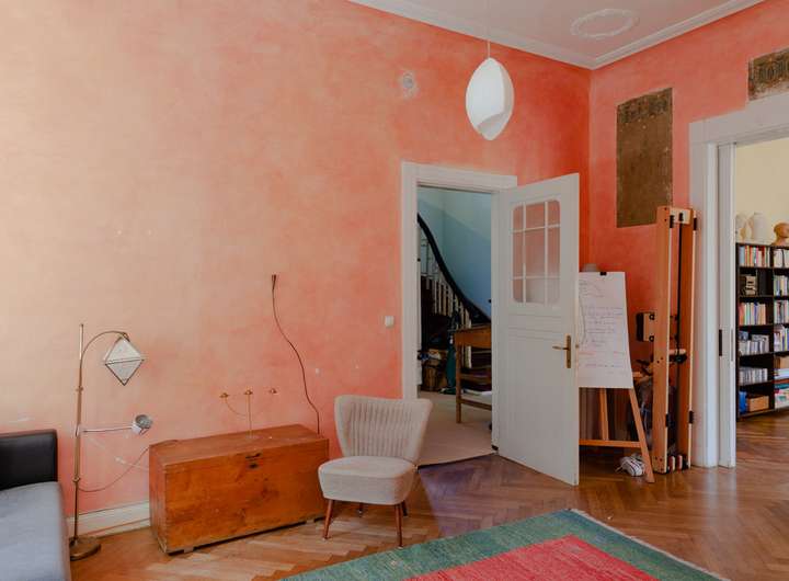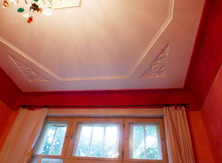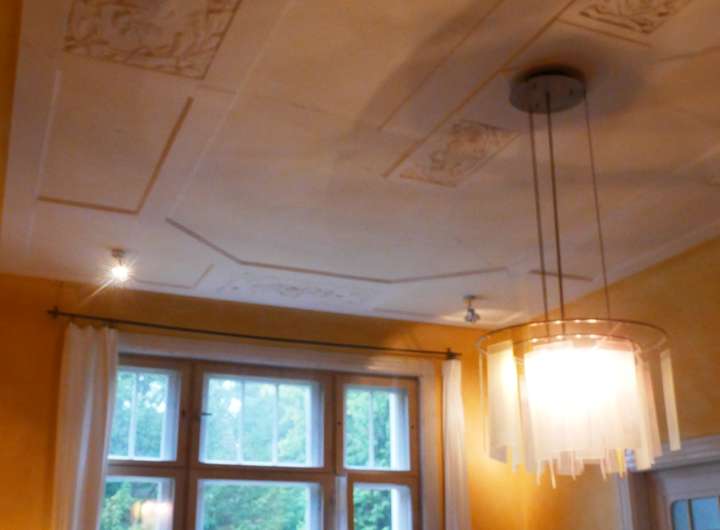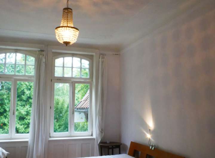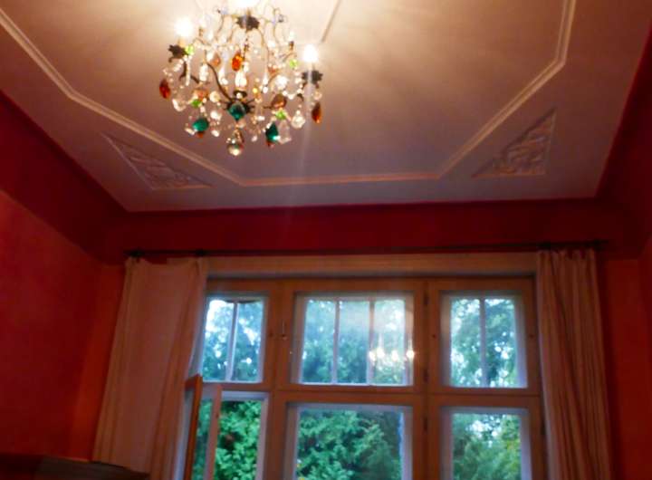 Die jetzigen Besitzer machten damals eine große Entdeckung: die abgehängten Decken wurden vorsichtig entfernt, und zum Vorschein kam feinster Originalstuck. Dieser wurde liebevoll mit biologischen Materialien, restauriert und ist ein Schmuckstück der Jugendstilvilla. Auch findet man in vielen Räumen noch die begehrten Originalheizkörper aus Gußeisen.. Allein diese sind schon wunderschön anzuschauen. In vielen Räumen befindet sich Original Eichenparkett und lange Pitch -Pine Dielen.