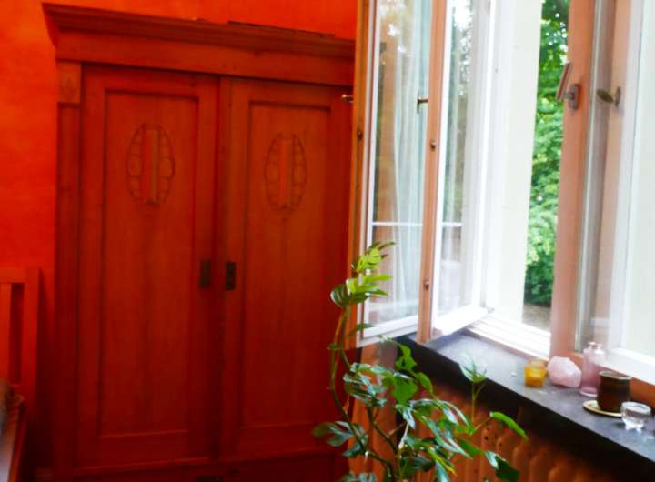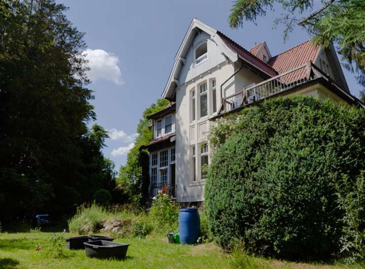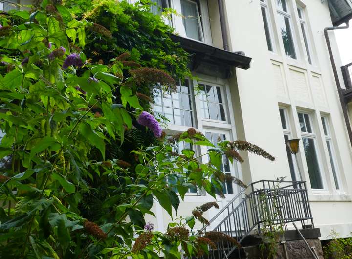 Diese Jugendstilvilla ist umrahmt von Hecken und Bäumen und ist fast uneinsehbar,