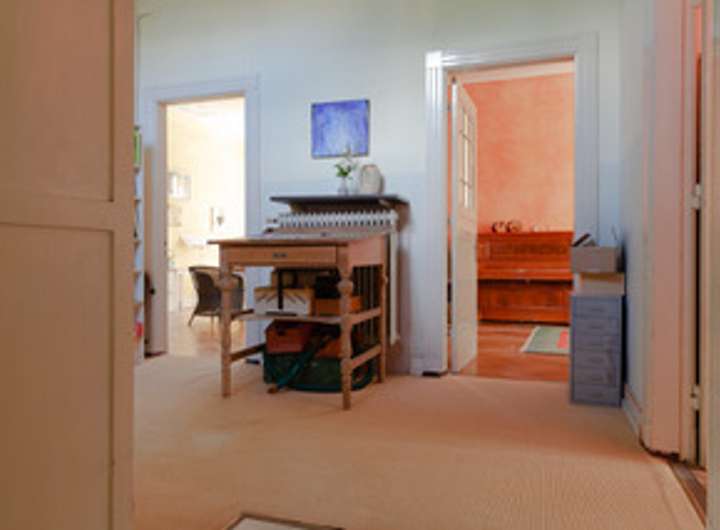 Betritt man den Eingang der Villa wird man sogleich von großzügigen Fluren, die bis unter das Dach reichen, umgeben.