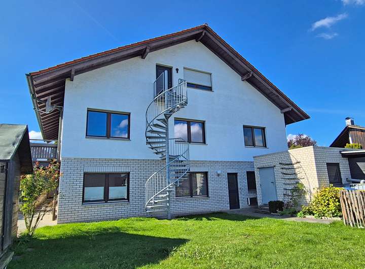 Die Maisonettewohnung im Erd- und Untergeschoss kann problemlos mit der Dachgeschosswohnung verbunden werden – eine bereits vorhandene Wendeltreppe im Erdgeschoss macht dies möglich. Die bestehende Trennwand kann bei Bedarf entfernt werden, sodass eine großzügige Wohneinheit über drei Ebenen entsteht.