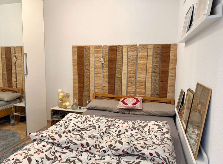 Das Herzstück der Wohnung ist der helle Wohnbereich mit Zugang zur modernen Einbauküche (ebenfalls 2021 erneuert) und zu dem nach Süd-West ausgerichteten Balkon – perfekt für sonnige Nachmittage und entspannte Abende. Der separat abgetrennte Schlafbereich schafft ein angenehmes Raumgefühl und eine klare Gliederung zwischen Wohn- und Schlafzonen.