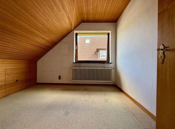 Der Doppelhaushälfte ist ein Stellplatz direkt vor der Haustür zugeordnet. Im Keller befinden sich hier ein großzügiger Abstellraum sowie ein Wasch- bzw. Trockenkeller. Außerdem verfügt dieser Gebäudeteil über ein Wannenbad mit Fenster, ein Esszimmer nach vorne heraus, eine Küche mit Zugang zur rückwärtigen Terrasse mit Blick und Zugang zum Garten, ein Schlafzimmer (halbes Zimmer) nach hinten heraus sowie ein geräumiges Dachgeschoss, welches aktuell als offenes Wohn- und Arbeitszimmer genutzt wird (könnte in zwei Zimmer unterteilt werden). Von hier aus gelangt man außerdem auf den Spitzboden. Dieser Gebäudeteil wird über eine Gas-Brennwert-Therme (Weishaupt 2020) mit Warmwasser und Heizwärme versorgt. Die Einheit ist seit April 2007 an eine nette Dame im mittleren Alters vermietet. Die Nettokaltmiete beträgt seit Juni 2024 monatlich 438,81 €. Die Einheit verfügt über rund 50 m² Wohnfläche zzgl. weitere ca. 50 m² Nutzfläche (Keller, Flure, Abseiten etc.). Von dieser Einheit werden auf Grund der Privatsphäre der Mieterin keiner Bilder veröffentlicht.