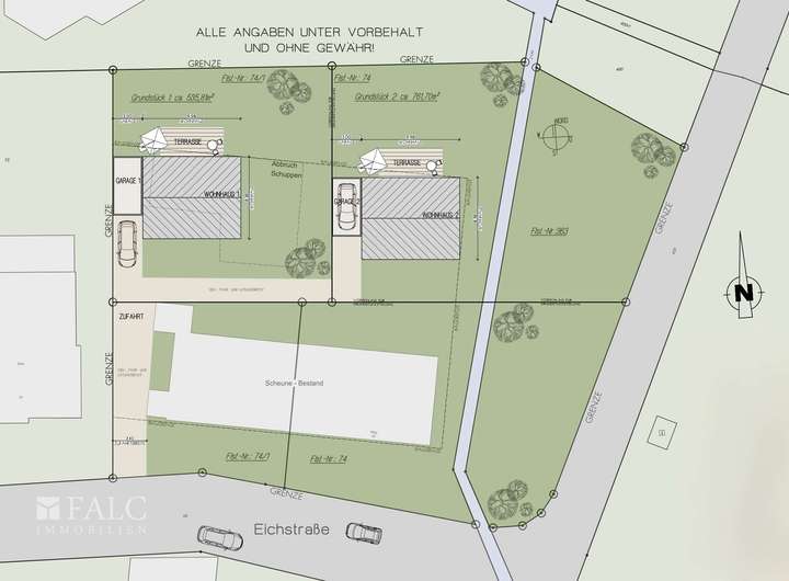 Grundstück 2 auf Flurstück 74 & 363: ca. 761,70 m² Grundstückfläche (hier angebotenes Grundstück)