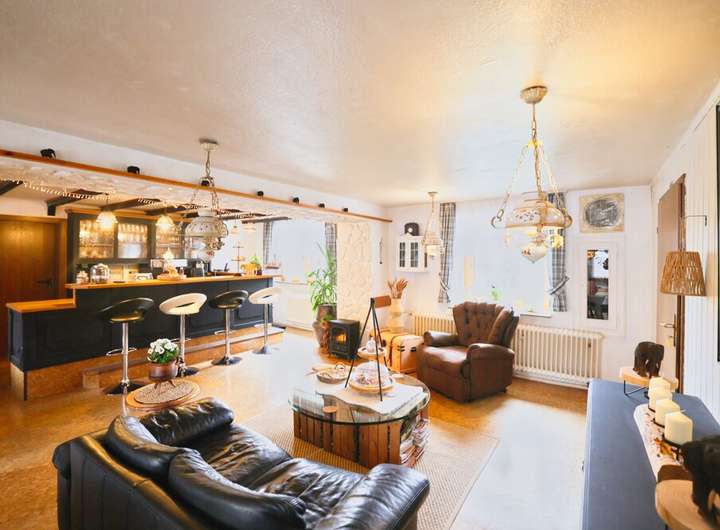 Vielseitig nutzbare Immobilie - ehemalige Gaststätte in Dachsenhausen im Taunus. Dieses charmante Einfamilienhaus besticht durch eine großzügige Wohnfläche von ca. 216 m² über 3 Etagen und bietet ausreichend Platz für die ganze Familie. Mit insgesamt 11 Zimmern, darunter 7 Schlafzimmer, eignet sich dieses Anwesen ideal für große Familien oder jene, die viel Raum für Gäste benötigen.