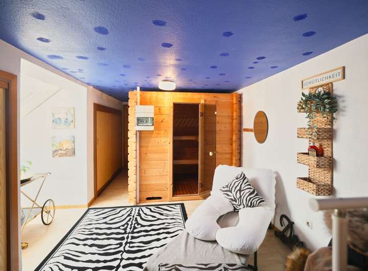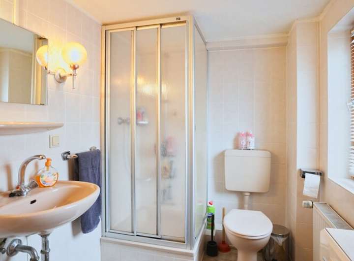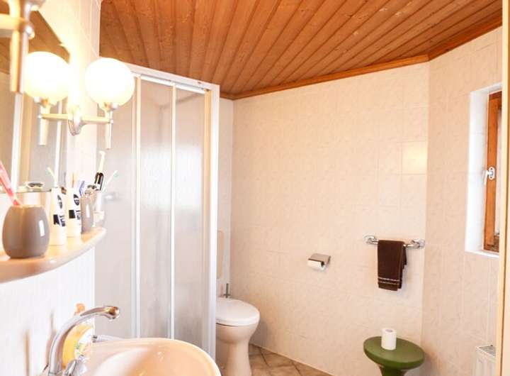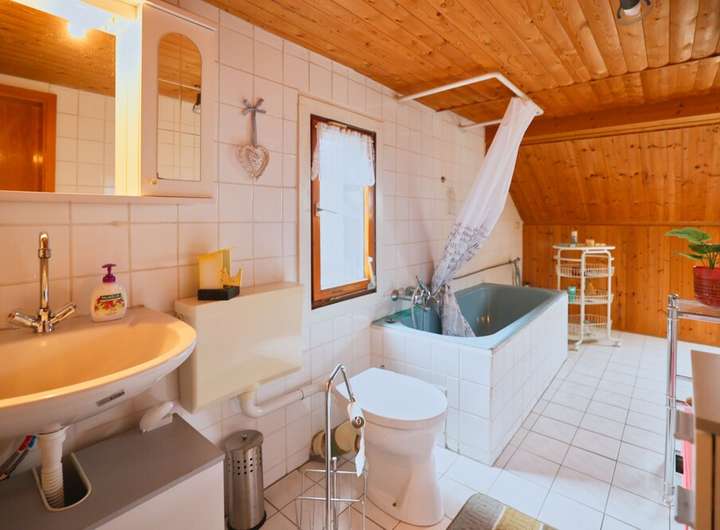 Die 4 Duschbäder im OG und das Wannenbad im DG sorgen für hohen Komfort und verhindern morgendlichen Stau. Zusätzlich steht Ihnen ein praktisches Gäste-WC zur Verfügung. Ein besonderes Highlight ist die Sauna im Dachgeschoss, die Ihnen nach einem langen Tag die Möglichkeit zur Entspannung und Erholung bietet. Im Obergeschoss sind Holzfenster verbaut, die 1-fach verglast sind.